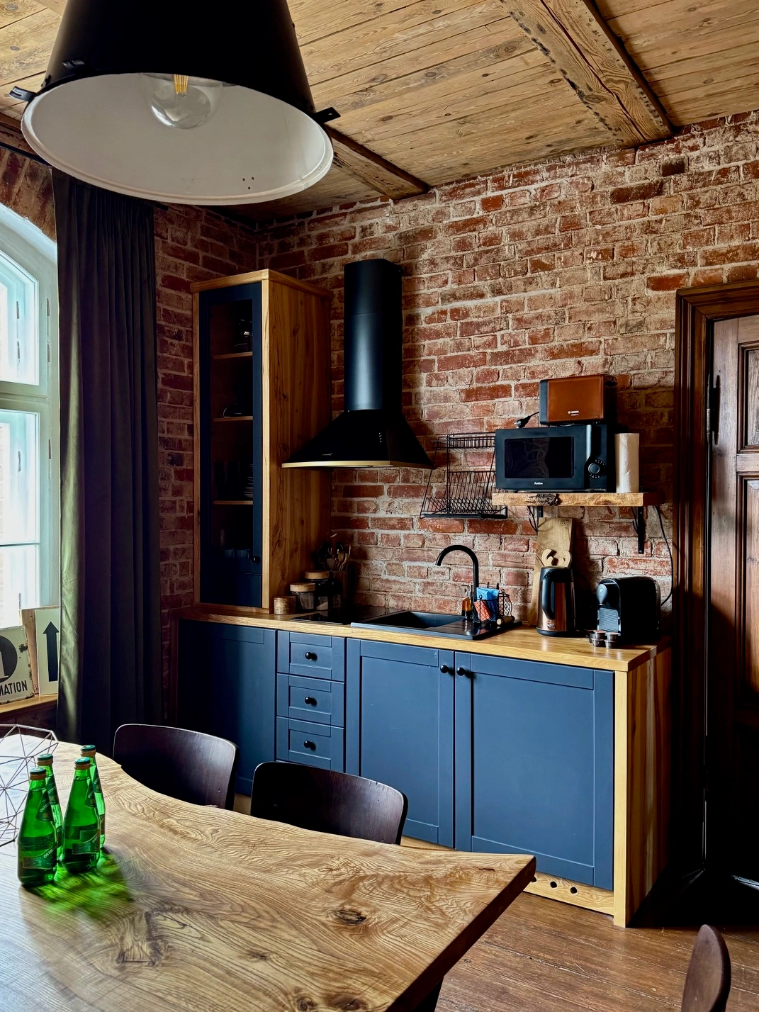 Szukasz wyjątkowego noclegu w miejscowości Tleń? Dworzec Tleń to klimatyczne apartamenty w zabytkowym, odrestaurowanym dworcu kolejowym, położonym w sercu Borów Tucholskich. To nie jest zwykły hotel. To stary dworzec z prawdziwą historią – surowa cegła, oryginalne eksponaty kolejowe, zabytkowe zegary i autentyczne detale PKP tworzą niepowtarzalny klimat. Już od progu wita gości historyczny bileter, a wnętrza zachwycają połączeniem tradycji i nowoczesnego komfortu. Każdy apartament w Dworcu Tleń ma indywidualny charakter. Naturalne drewno – dąb, czereśnia, akacja – nadaje przestrzeni ciepło i elegancję. Stolarka została wykonana w naszej pracowni, z dbałością o najwyższą jakość i spójność stylistyczną. Czujesz atmosferę dawnego dworca, a jednocześnie korzystasz z wygody współczesnych apartamentów.