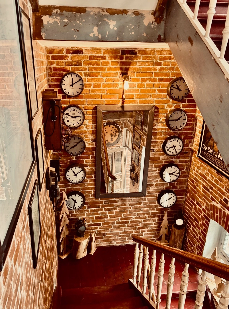 Renowację dworca w Tleniu przeprowadziliśmy z dużą dbałością o historyczną tkankę budynku. Zachowaliśmy oryginalne drzwi z 1906 roku z dawną nazwą miejscowości Klinger. Nowe wyposażenie powstało w naszej pracowni stolarskiej, gdzie wykonaliśmy zarówno zabudowy, jak i wolnostojące meble. W aranżacji wykorzystaliśmy naturalne materiały – cegłę, lite drewno oraz stonowane oświetlenie – rezygnując z nadmiaru dekoracji na rzecz prostoty i spójności.