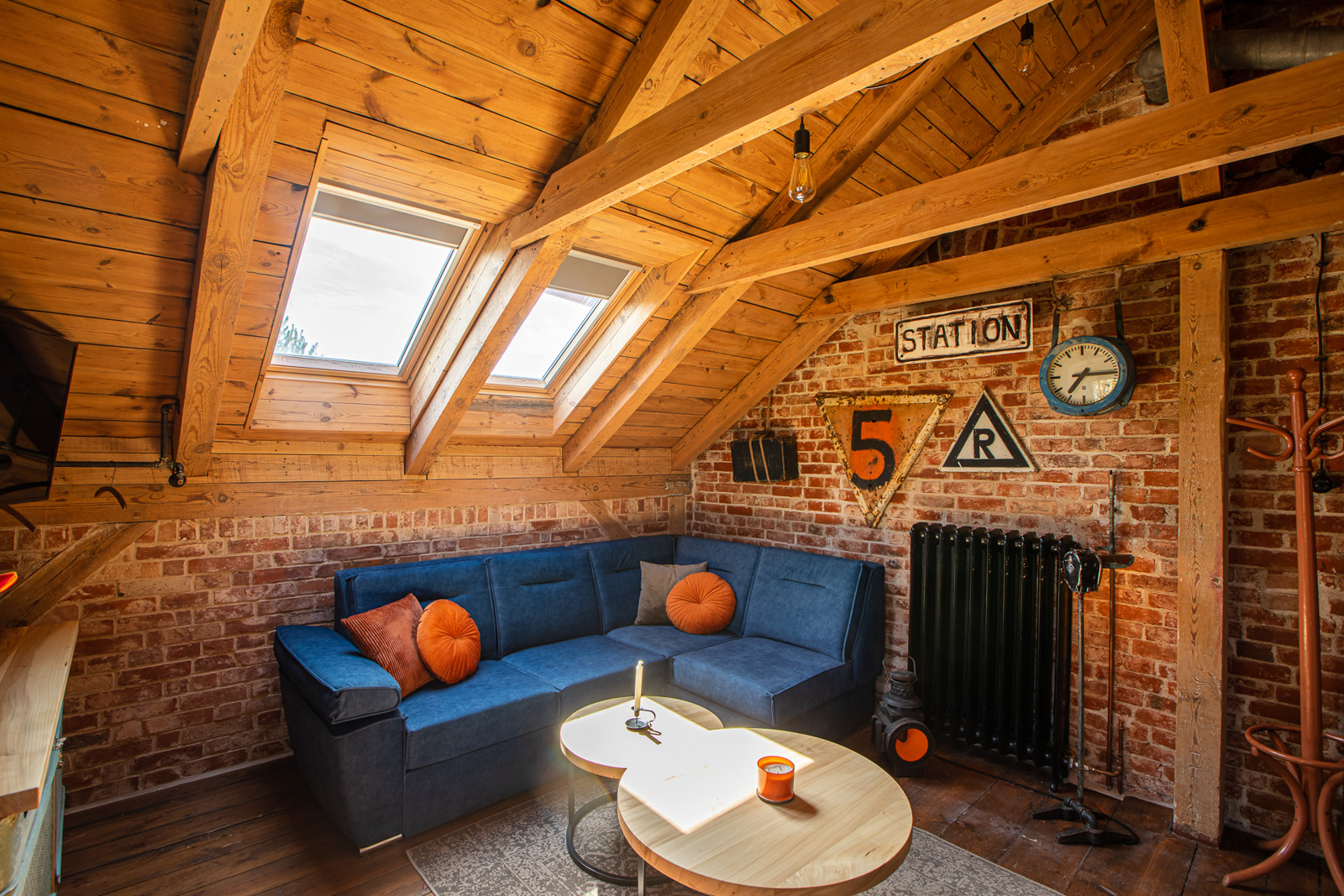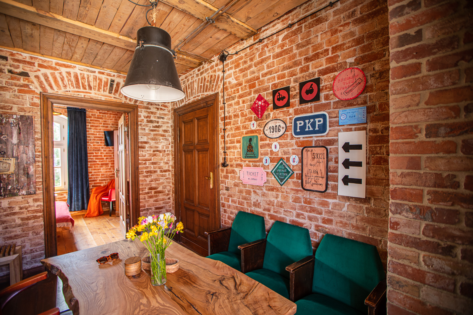 W kameralnym budynku dawnego dworca kolejowego oddajemy do Państwa dyspozycji dwa apartamenty oraz jeden mały pokój dwuosobowy.
